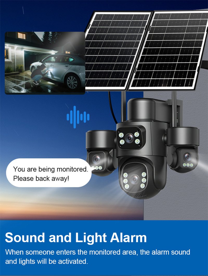 Unlike traditional single or dual-lens cameras, this four-lens system provides unprecedented multi-angle coverage, effectively eliminating blind spots and capturing every critical detail from multiple perspectives simultaneously . Powered by the sun and connected via 4G, it operates completely off-grid, making it the perfect choice for remote locations where power and internet are unreliable or unavailable .