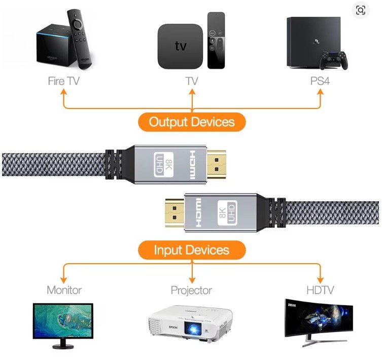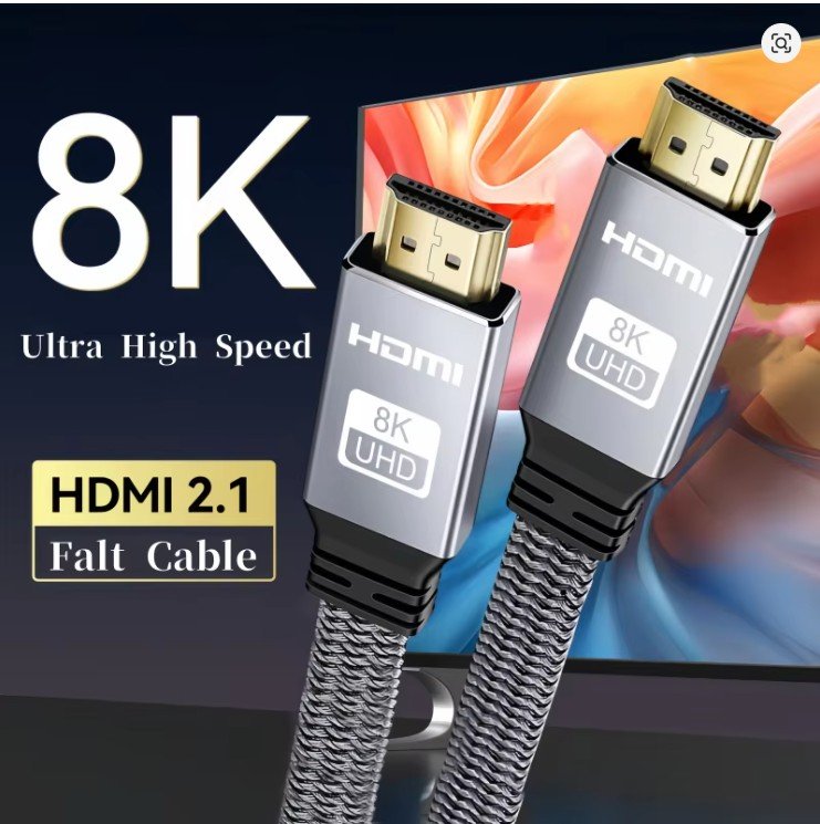 8K HDMI Flat Cable 48Gbps High Speed 8K60 4K120 144Hz Braided HDMI 2.1 Cord 3D eARC HDCP 2.2&2.3 Compatible with Roku TV/PS5