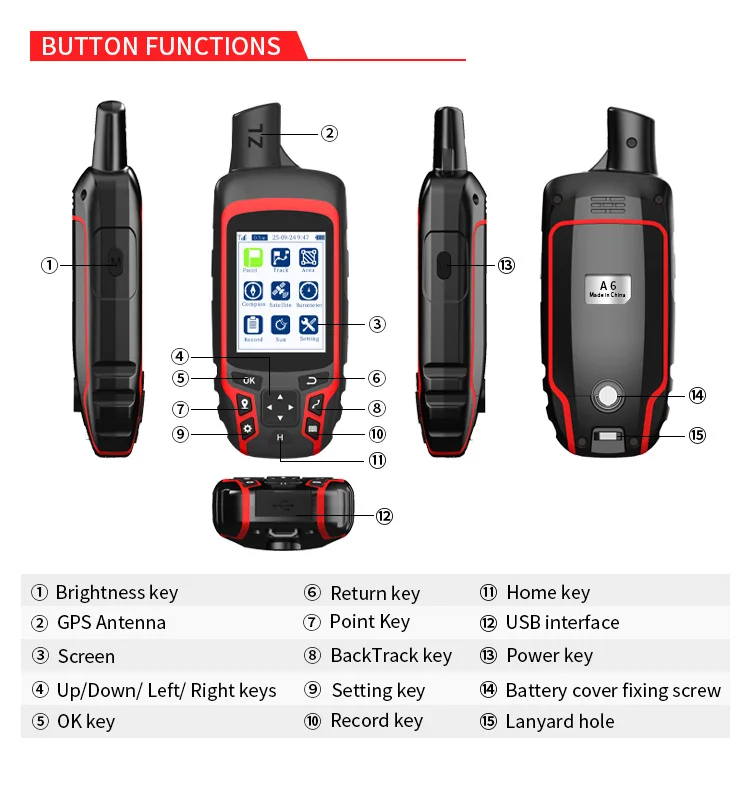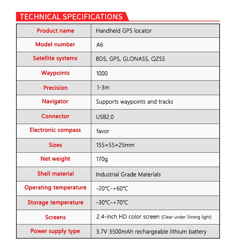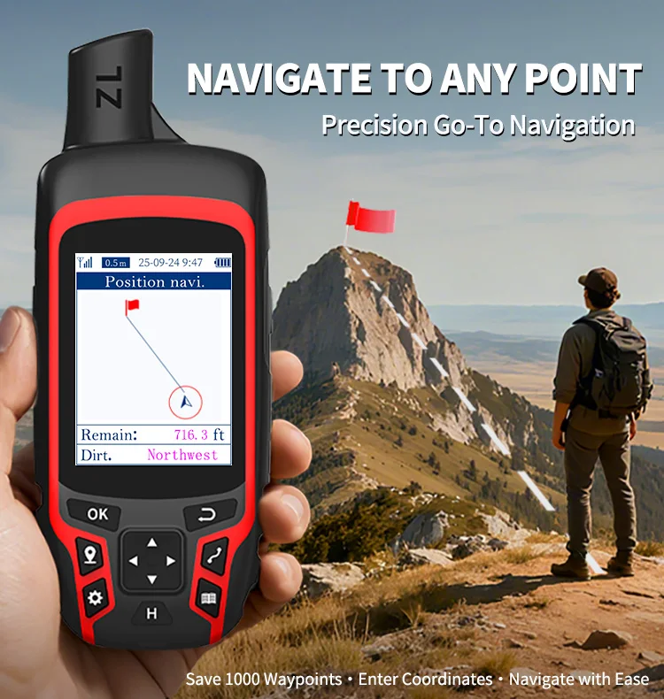 Waypoint Navigation: A6 handheld navigator can save current latitude and longitude coordinates, enter known coordinates, and navigate to the coordinates with straight line, delete coordinates,can be saved in total 1000 waypoints