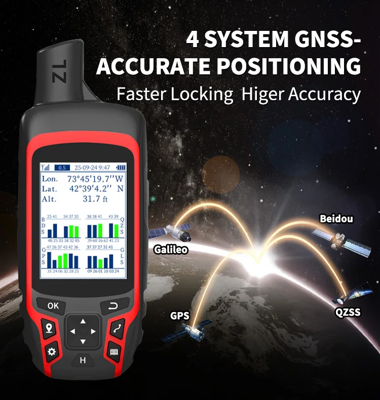 Multi-GNSS Support: Access to multiple global navigation satellite systems (GPS, Galileo, BeiDou and QZSS)for superior positional accuracy and precise knowledge of where you are, especially in challenging terrain or areas with weak signals, the position accuracy is less than 5 feet