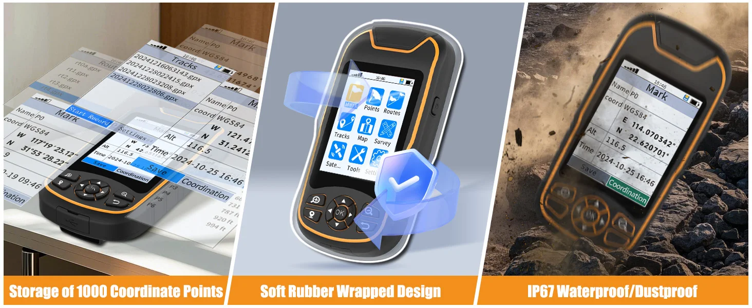Compact and lightweight GPS handheld navigator boasts an anti-slip design offering a bright 3.2″ screen that is sunlight readable, even in bright sunlight, plus, physical buttons provide more versatility in any conditions
