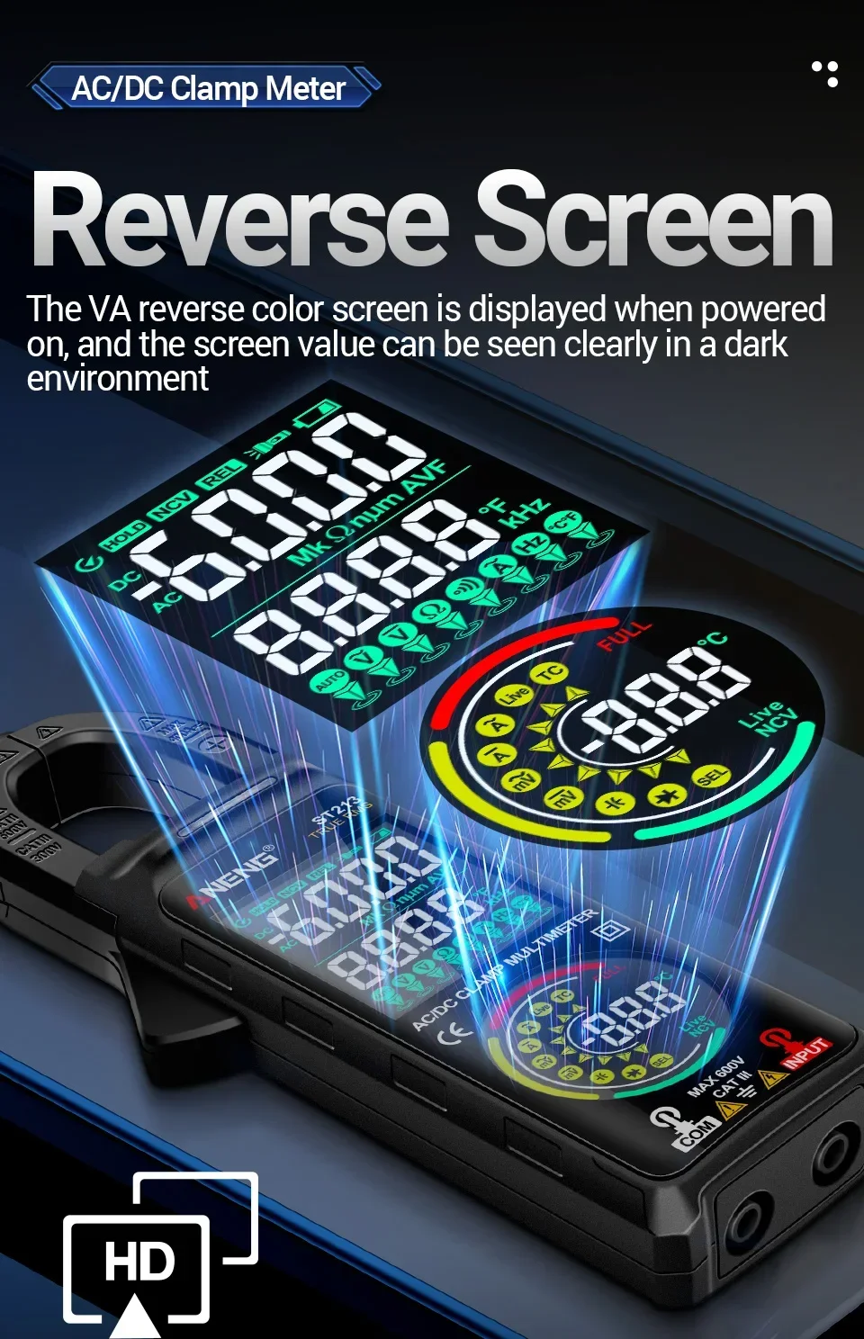 The ANENG PN107 Auto Digital Clamp Meter is a high-performance electrical testing tool designed for accurate, safe, and efficient measurement of electrical parameters. Combining the functionality of a multimeter and clamp meter, this device is ideal for electricians, technicians, and DIY users working on electrical systems.