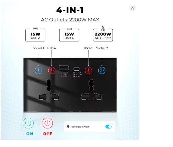 –【Full On And Off Function】Manual Buttons And App Can Turn Off Or On All Sockets, Usb, And Type-C Ports