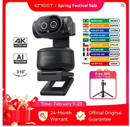 Upgrade your video quality and on-camera presence with the EMEET PIXY 4K PTZ webcam, a premium dual-camera AI tracking solution built for creators, streamers, remote professionals, teachers, and business teams. Designed to deliver sharp 4K clarity, smooth subject tracking, and hands-free control, this advanced webcam combines intelligent PTZ movement with a high-quality Sony sensor to ensure you always stay centered, clear, and professional—whether you’re live streaming, hosting meetings, recording content, or presenting online.