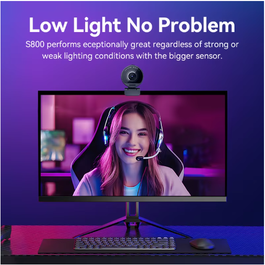 Setup is simple — just plug the webcam into your computer’s USB port and start instantly. No complicated drivers required. The S800 works seamlessly with popular platforms like Zoom, Teams, Skype, Google Meet, YouTube, and more.
