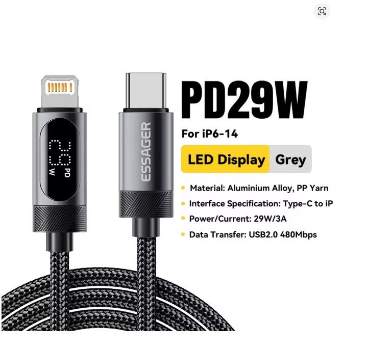 Upgrade your charging experience with the Essager USB Type C to Lightning Cable, specially designed for high-speed power delivery and stable data transfer. Engineered for Apple users, this premium cable supports up to 20W PD fast charging for iPhones and 29W for iPads and MacBooks, making it an ideal companion for your modern devices.