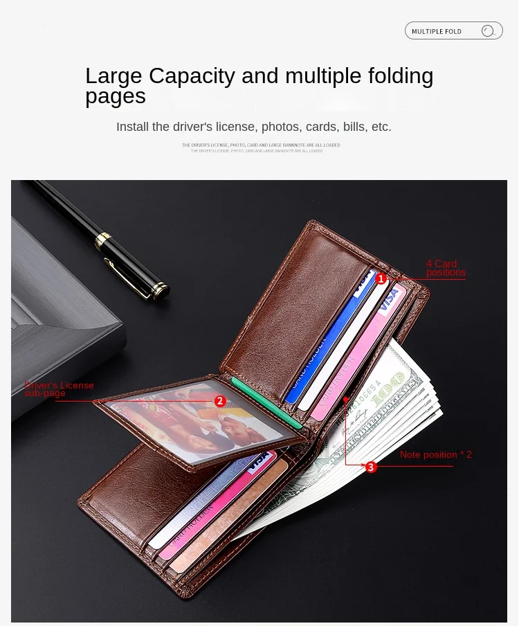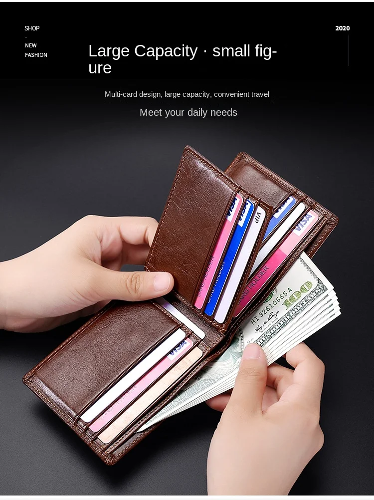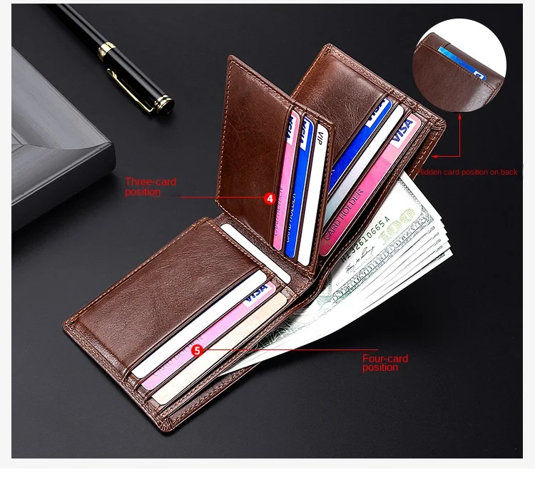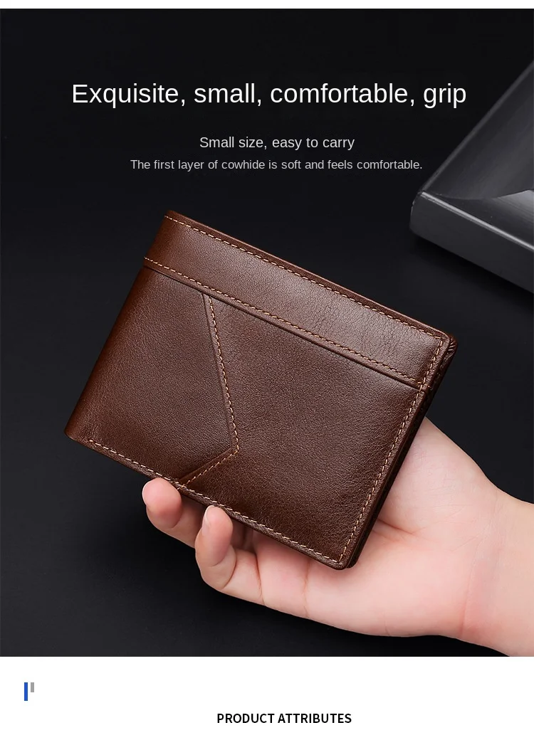 Wholesale Genuine Cow Leather Wallet Short Bifold Luxury Purse for Men RFID Credit Card Holders