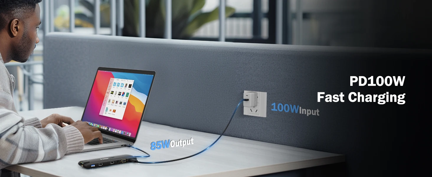 🔹 100W Power Delivery: Charge laptops, tablets, and phones simultaneously with up to 85W output (100W input required). Simplifies your setup without extra chargers.