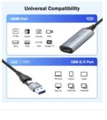 The capture card adopts USB and TYPEC dual-head design: By adopting the dual-head design, the capture card can meet the needs of different users, but also increase its flexibility and versatility. Whether you’re using an older device with a USB interface or a new TYPEC device, this capture card makes it easy to connect and achieve high-quality video capture.
