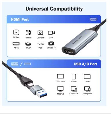 • HDMI-Compatible :With its HDMI-compatible feature, this device can seamlessly connect to your Switch, Xbox, PS4, or PS5 console for easy recording and streaming.