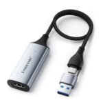 Lemorele USB 2.0 Video Capture Card – HDMI-Compatible to USB/Type-C | 1080P Full HD Game Recording | Plug-and-Play Game Grabber