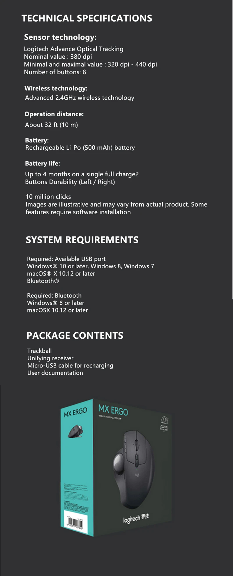 Logitech MX ERGO Wireless Trackball Mouse 2.4G wireless Bluetooth Mice Office Drawing CAD Laptop RECHARGEABLE BATTER Original