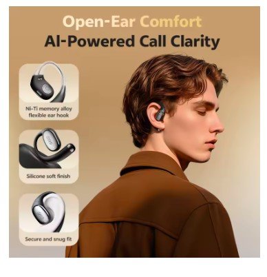 QCY Crossky C50 Open Ear Wireless Earbuds Bluetooth 6.0 Comfort Clip On Sports Earphone 4 Mic AI Clear Call Bass Boost Headphone