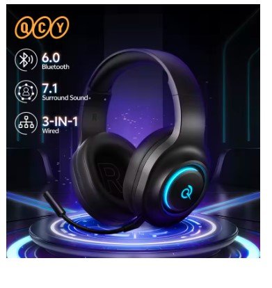 QCY Heroad V200 Wireless Gaming Headset Experience immersive sound, ultra-low latency, and all-day comfort with the QCY Heroad V200 — the next-generation wireless gaming headset designed for pro gamers and entertainment lovers.  Powerful 7.1 Surround Sound & 50mm Drivers Equipped with large 50mm neodymium drivers and 7.1 virtual surround sound, the V200 delivers clear treble, deep bass, and accurate positional audio, allowing you to hear every detail and movement in the game.  Triple Connection Modes – Bluetooth 6.0 / 2.4GHz / USB-C Enjoy flexible connectivity with three modes: Bluetooth 6.0 for mobile devices, 2.4GHz wireless for ultra-stable PC and console gaming, and USB-C wired mode for zero-latency audio. Compatible with PC, Laptop, PS4, PS5, Switch, Tablets, and Smartphones. 20ms Ultra-Low Latency for Competitive Gaming Stay ahead in every battle! The 20ms ultra-low latency ensures instant sound feedback, perfect for fast-paced FPS, MOBA, or racing games.  Comfortable & Durable Build Designed with a lightweight 286g metal headband and soft memory foam earmuffs, the Heroad V200 provides a pressure-free fit even during long gaming sessions. The strong yet flexible frame ensures durability and long-term use.  Detachable Noise-Canceling Microphone Communicate with your teammates clearly thanks to the detachable noise-canceling mic, which filters background noise and provides crisp, real-time voice chat. RGB Dynamic Lighting Add a cool gaming atmosphere with vibrant RGB lighting effects that match your setup and enhance immersion.  Long Battery Life & Easy Switching Enjoy up to 100 hours of playtime (Bluetooth) or 80 hours (2.4GHz mode) on a single charge. Easily switch between wireless and wired modes — the included USB-C cable supports both charging and audio.  Multi-Scenario Mode via qcyApp Customize your sound experience with three audio modes – Gaming, Movie, and Music – all adjustable through the QCY App for the perfect sound in every situation.  Specifications Driver: 50mm Neodymium Connectivity: Bluetooth 6.0 / 2.4GHz / USB-C Latency: 20ms Battery Life: 80H (2.4G) / 100H (BT) Weight: 286g Compatible Devices: PC, Laptop, PS4, PS5, Switch, Tablet, Smartphone Features: 7.1 Surround Sound, RGB Light, Detachable Mic, Memory Foam, Metal Headband Why Choose QCY Heroad V200? A perfect balance of performance, comfort, and durability, the QCY Heroad V200 is ideal for gamers, streamers, and music lovers who demand high-quality audio, stable connection, and stylish design.