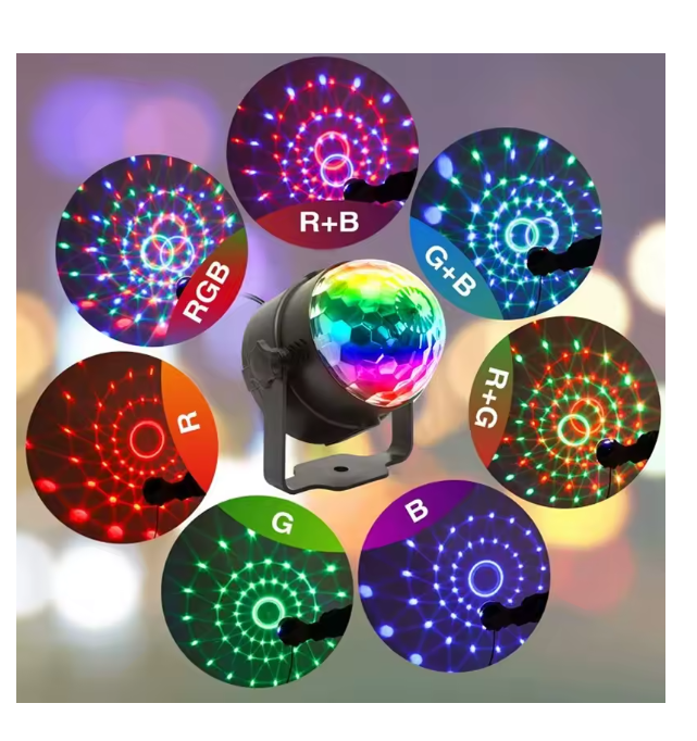 - 7 LIGHTING MODES PARTY LIGHTS : Red, green, blue, red/green, red/blue, green/blue and RGB. Just choose the one you like.