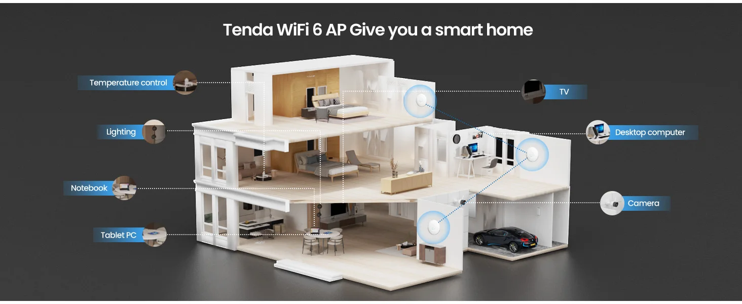 Upgrade your home or business network with the Tenda I29 WiFi 6 Access Point, built for faster speeds, stronger coverage, and stable performance even when many users are connected. With WiFi 6 (IEEE 802.11ax) technology and AX3000 dual-band speed, this ceiling-mount AP delivers smooth streaming, fast downloads, and lag-free browsing across wide areas.