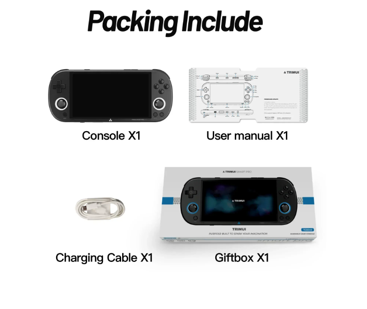 | Sockets | 1. Top Type-C: USB Host, can be plugged into USB handle 2. Bottom Type-C: USB charging port, OTG function 3. TF card slot |