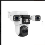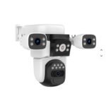 This camera uses a three-lens configuration that performs simultaneous monitoring of multiple directions, giving broad coverage of the surveillance area. One lens can be dedicated to panoramic views while the others focus on targeted monitoring zones, reducing blind spots and expanding field of view.