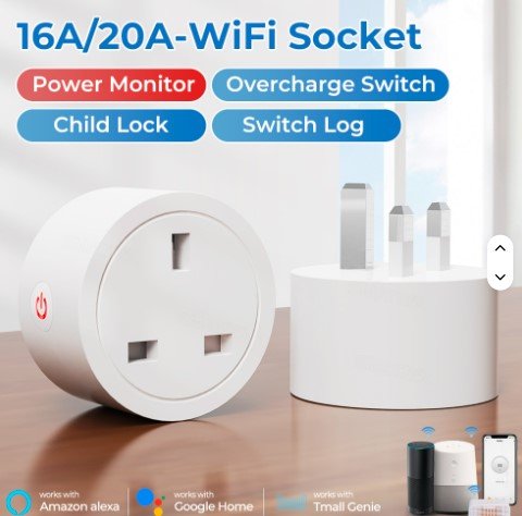 Wi-Fi Smart Tuya 20A UK Plug Outlet Smart Home Life APP Google Home Alexa 20A 16A Tuya Power Monitor WiFi Socket